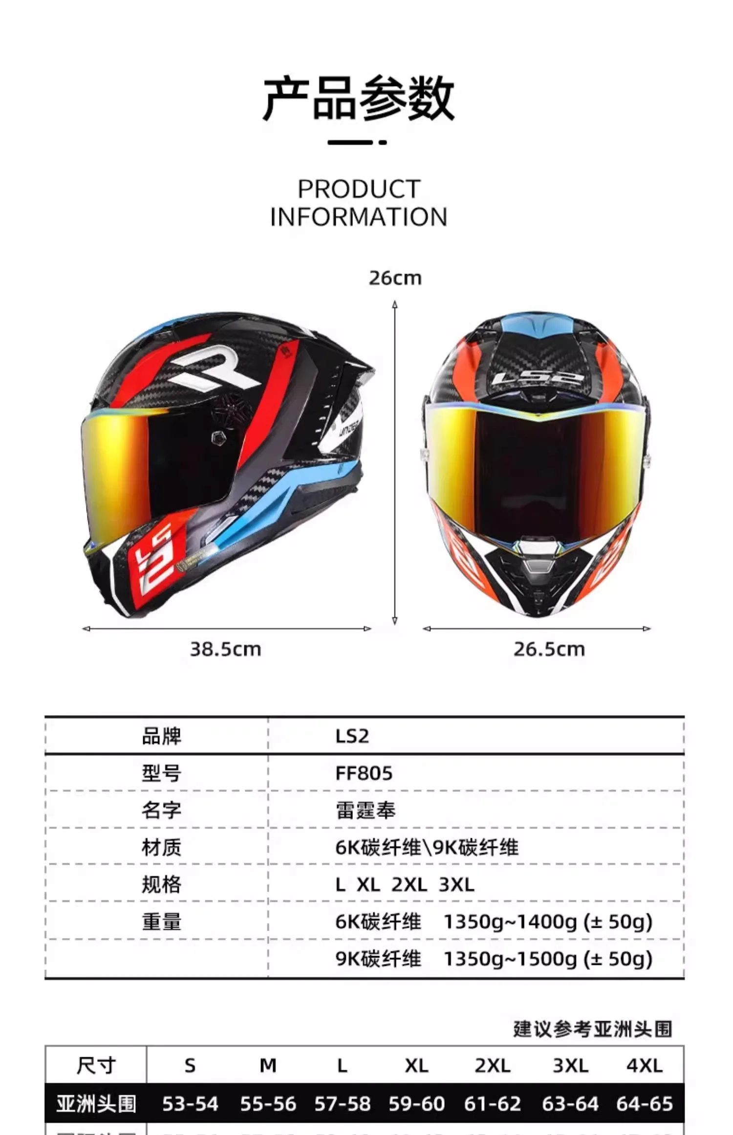LS2 FF805 9K – Carbon Full-Face Racing Motorcycle Helmet with Tail Wing