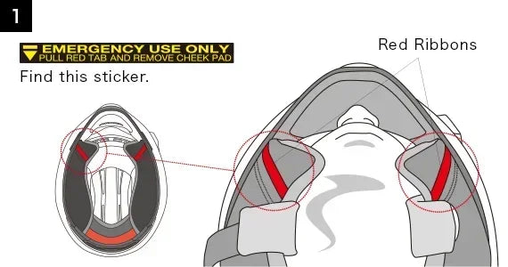 In an accident, it is difficult for a third party to remove a helmet from a rider. Although impact-absorbing performance and comfort are essential for a helmet, to support a third party giving aid to a rider in an accident is one of the important functions of a helmet. E.Q.R.S. (Emergency Quick Release System) developed by SHOEI makes removing of a helmet easy minimizing a load on a rider's neck where is possibly injured by pulling strip.