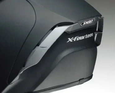 X-Fourteen / X-Spirit III, developed putting much value on the use at circuits, sets the position where a rider strongly leans forward as basic position. The shell is designed by analyzing the riding wind running from front part of a helmet to rear, and then to back of racing suit at the wind tunnel facility. The edges and shapes on surface of a shell, rear stabilizer equipping rear flaps exchangeable depending upon riding condition and lower air spoiler are designed and equipped to maximally increase aerodynamic performance. Comparing values in wind tunnel experiment with its predecessor, LIFT, DRAG and YAWING decreased by 3%, 10% and 50% respectively (value for reference measured by in-house facility). Greatly increased aerodynamic performance can do a lot to ease riders' fatigue.