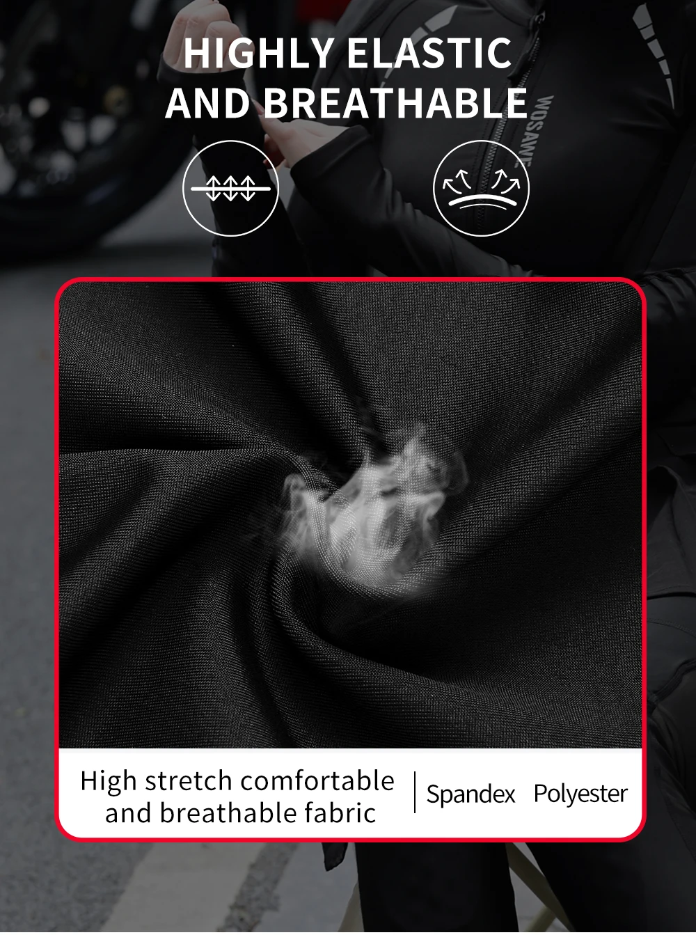 1. Polyester splicing mesh fabric, high elasticity and breathability, effectively dissipates heat and keeping dry and comfortable during cycling